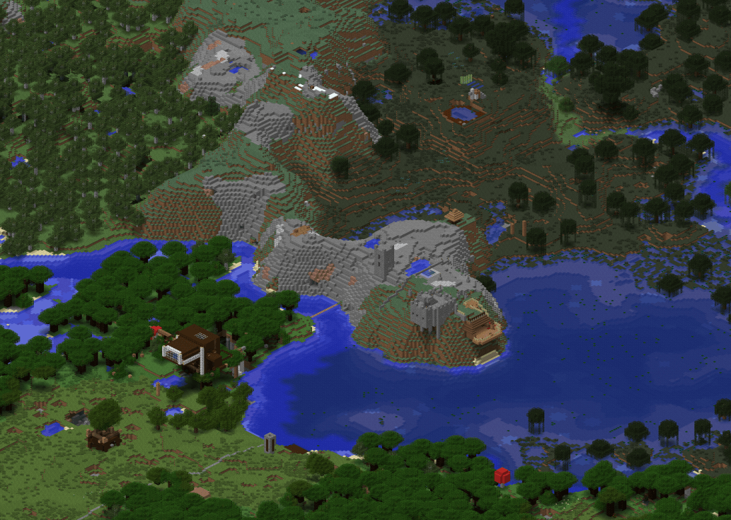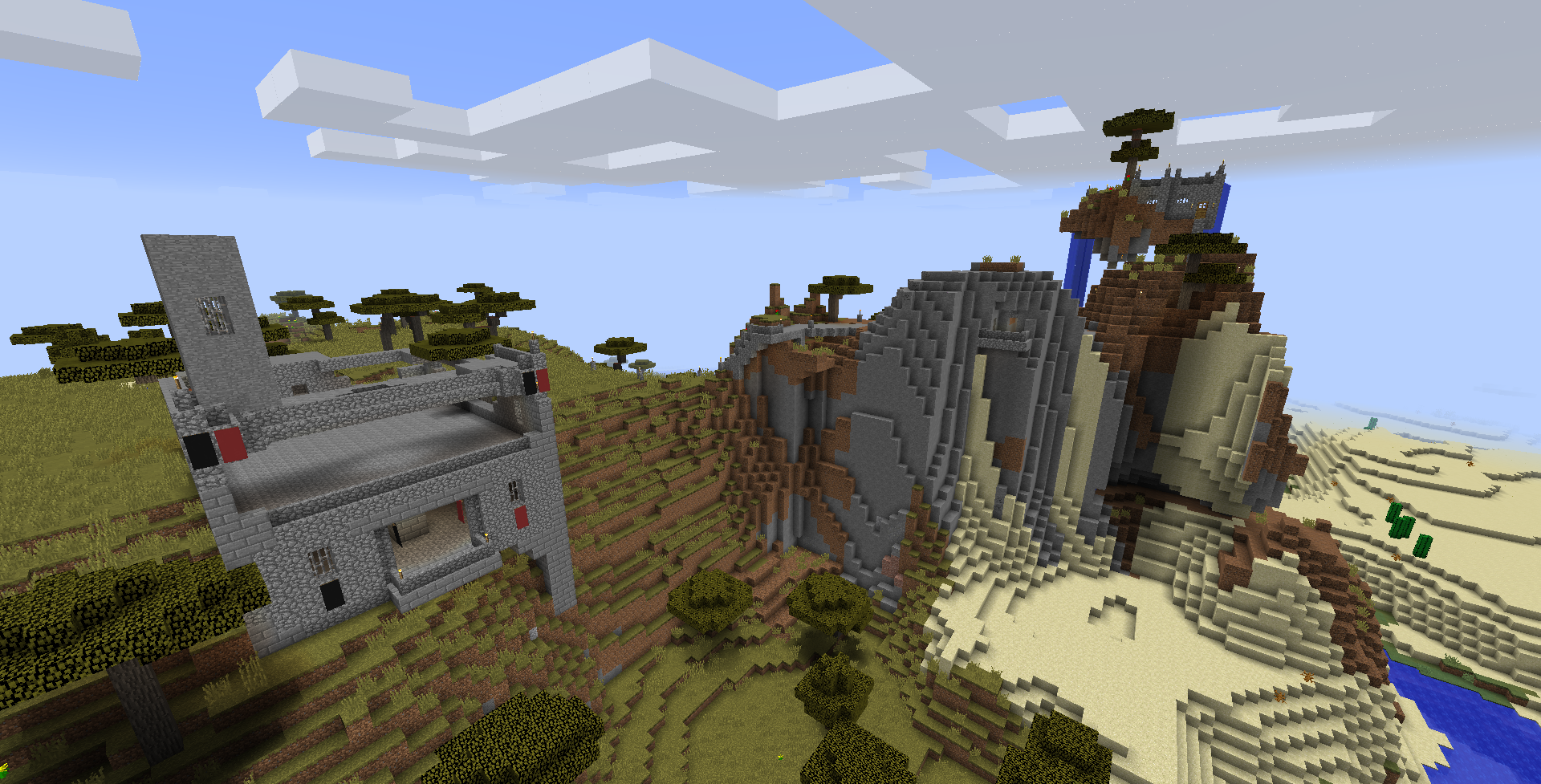 It started off with my classic "wizard" castle as you can see in the top right; which I made a pathway through a small stone wall on my way to the large open area where i began excavating for construction.